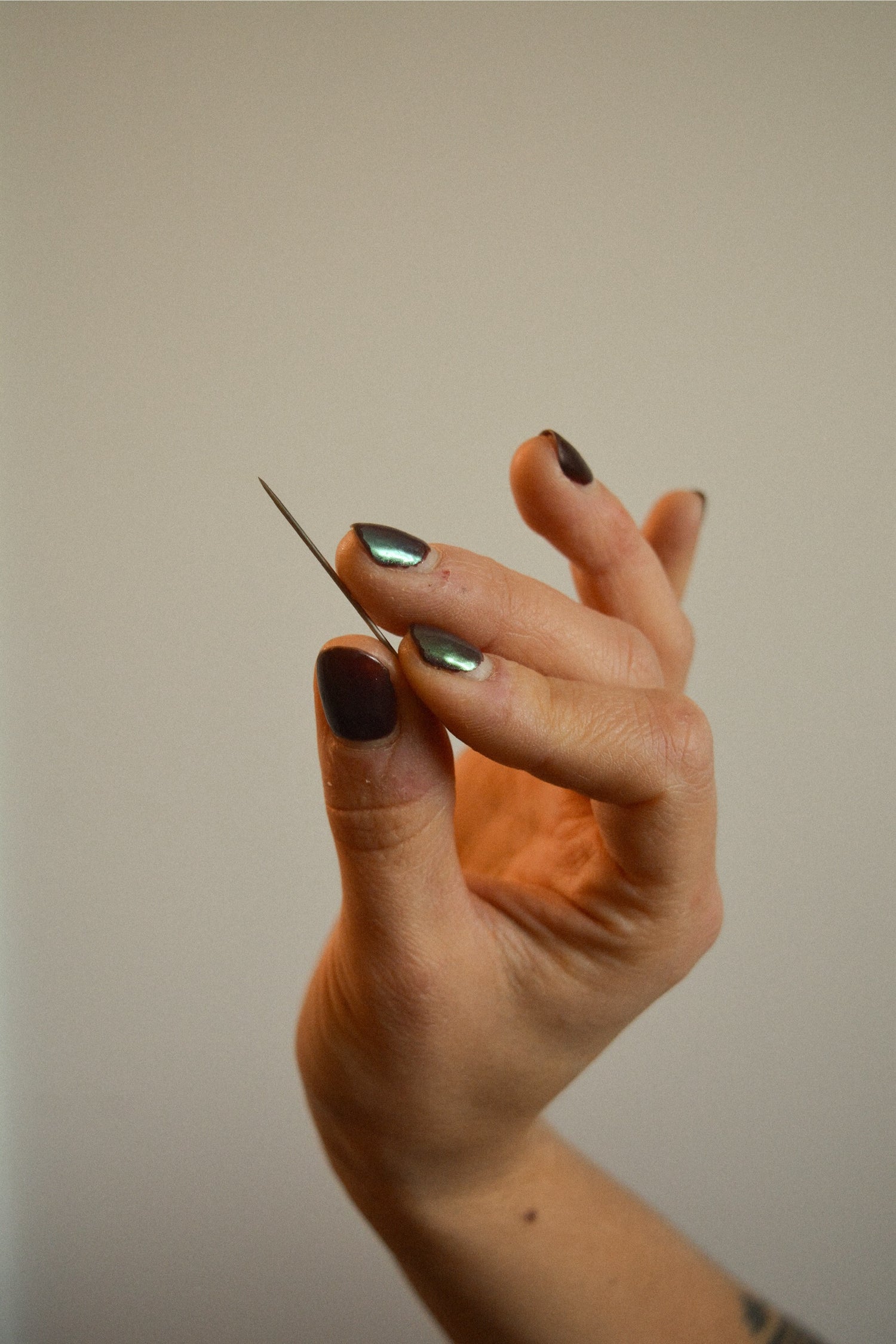 Qu’elles soient d’esthétique bohème, punk, organiques ou fantaisistes, les broderies de Caroline Auger sont le reflet de sa personnalité, de ses émotions et de son histoire. Sous chaque mouvement du fil entre ses doigts, l’artiste créer un espace sûr où extérioriser et canaliser ses émotions, positives comme négatives. Elle perçoit l’expression artistique comme un instrument de guérison, un moyen d’apaiser l’esprit afin de renouer à son être intérieur. Chaque point, chaque fil entrelacé, est soigneusement travaillé avec précision, patiente et attention au coeur d’un processus méditatif qui permet de transcender les limites du temps et de l’espace.